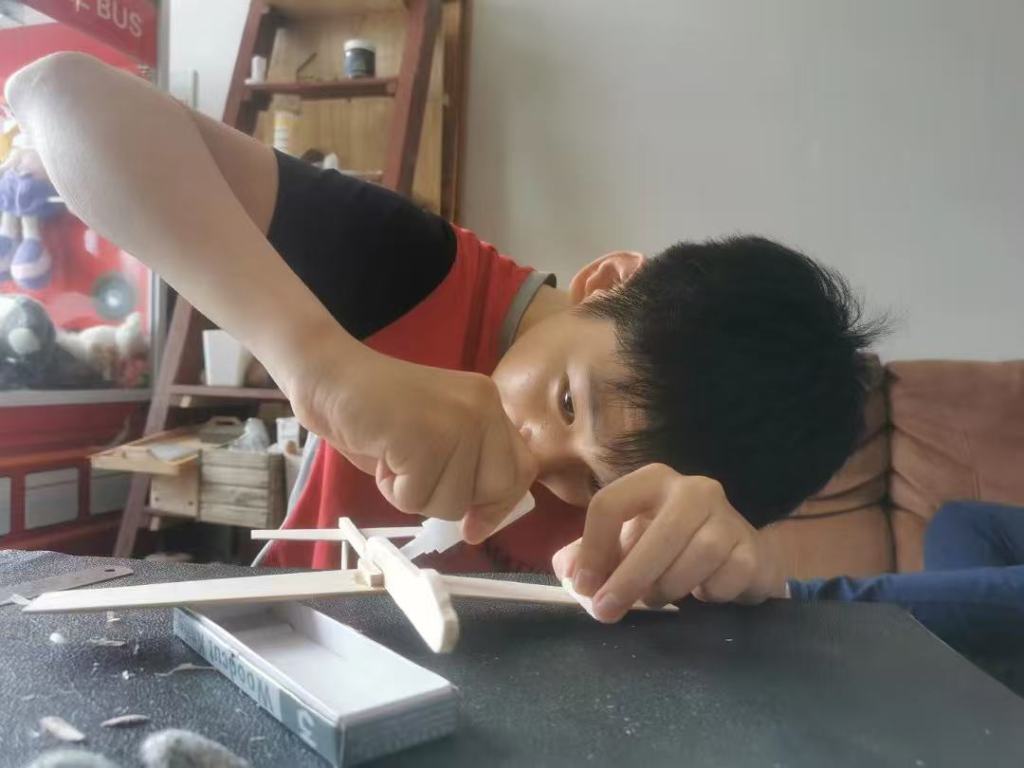 I learned to make wooden model airplanes from my teacher for a whole year. The tools included a small knife, and the materials were a few thin wooden pieces and a bottle of glue.In my father’s childhood, he made models by grinding discarded iron pieces he picked up into blades.